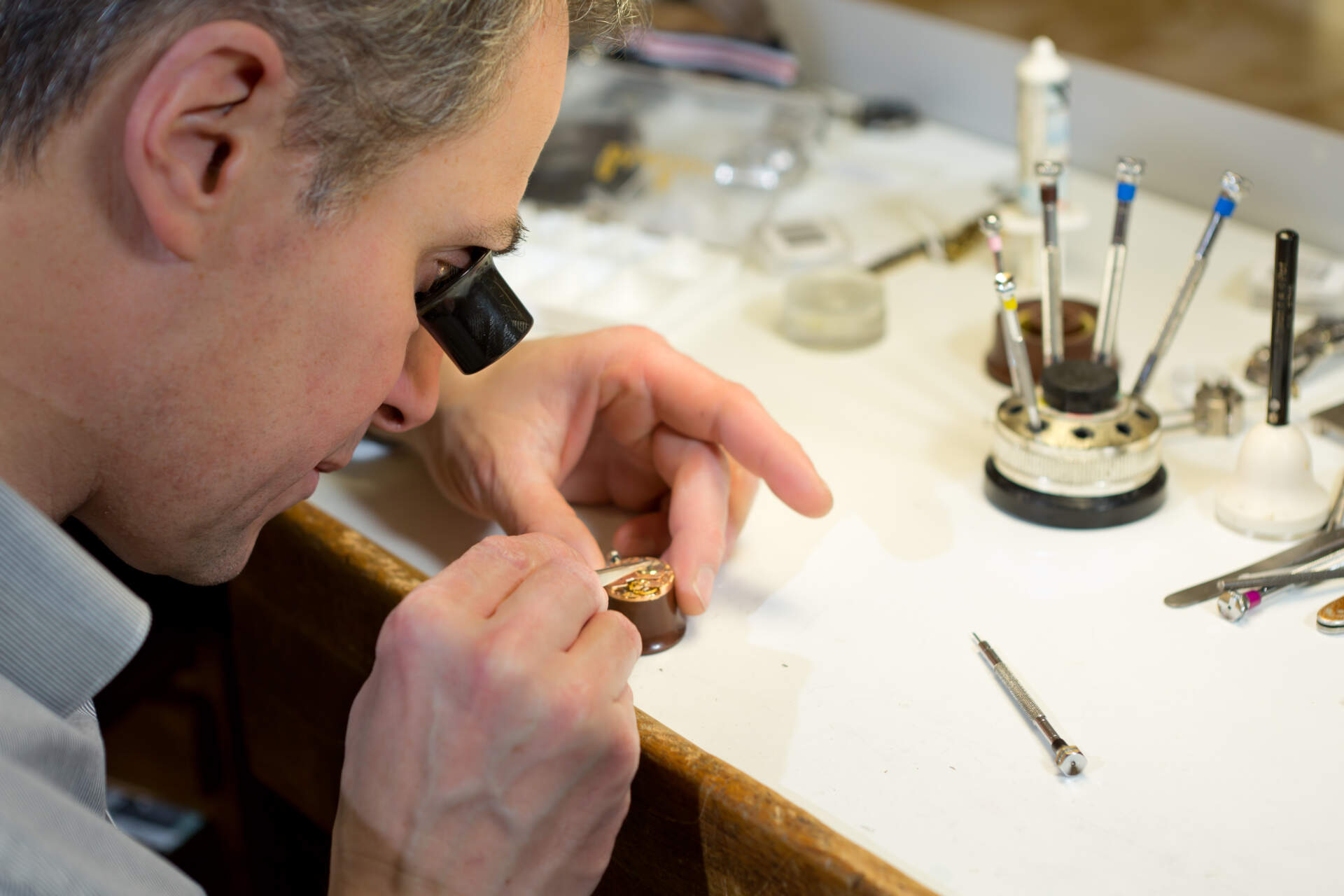 Le cœur de métier d’horloger, bijoutier, joaillier reste primordial et l’ainé des fils Hervé, horloger diplômé de l’Ecole de Morteau veille à le mettre en avant avec les réparations d’horloges, les entretiens de réveils, de montres dans l’atelier situé au cœur du magasin.